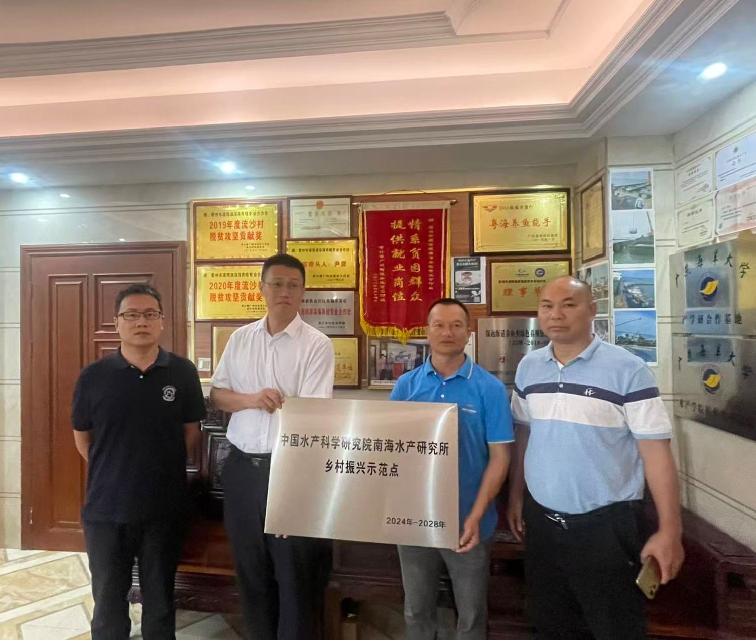 近日,中国水产科学研究院南海水产研究所与雷州博源深海养殖专业合作社合作的乡村振兴示范点正式揭牌。雷州市副市长、“百千万工程”帮扶协作驻雷州工作队副队长方良锋出席活动,共同见证这一科技助农、产业兴村的重要实践落地,标志着南海所深化“百千万工程”帮扶协作再添新成果。