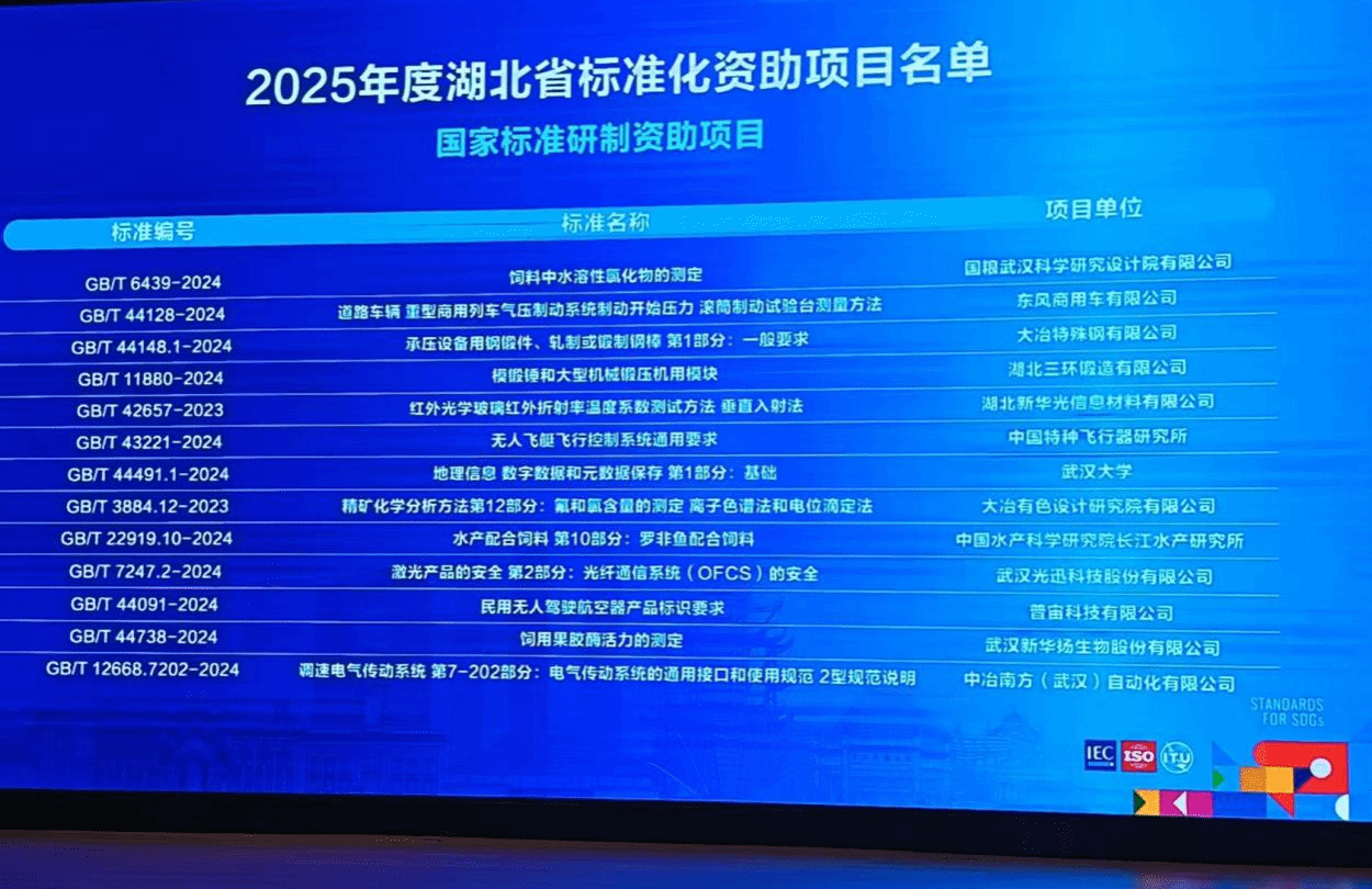 活动还公布了2025年度湖北省标准化资助项目名单,共10项国际标准、25项国家标准、85项省级地方标准及25个省级专业标准化技术组织项目入选。