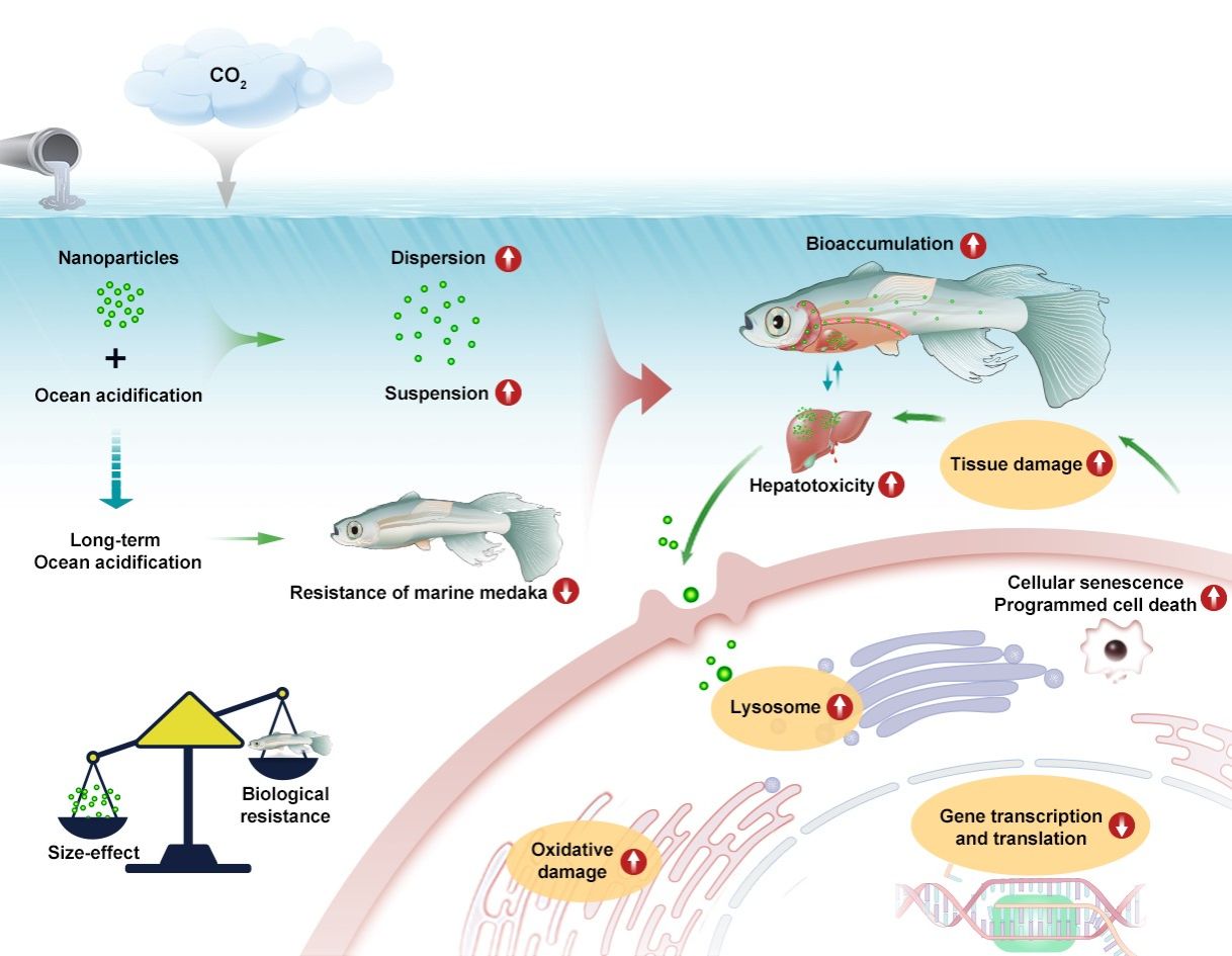 研究结果揭示了海洋酸化下典型人工纳米颗粒对海洋鱼类的毒性机制,为理解全球气候变化与新污染物协同作用下的海洋生态风险提供了新视角。