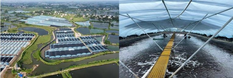 此次课题组首次采用了全铺膜小棚池开展“斑节对虾小棚高效生物絮团养殖技术”示范,主要技术特点如下: