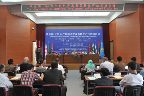 5月21日,由农业部和联合国粮农组织(FAO)联合主办的“水产饲料开发及苗种生产技术培训班”在位于无锡的中国水产科学研究院淡水渔业研究中心开班。来自巴基斯坦、孟加拉国、印度尼西亚、阿塞拜疆、塔吉克斯坦、哈萨克斯坦、吉尔吉斯斯坦、格鲁吉亚、亚美尼亚和乌兹别克斯坦等10个国家的18名学员将参加为期1个月的培训。