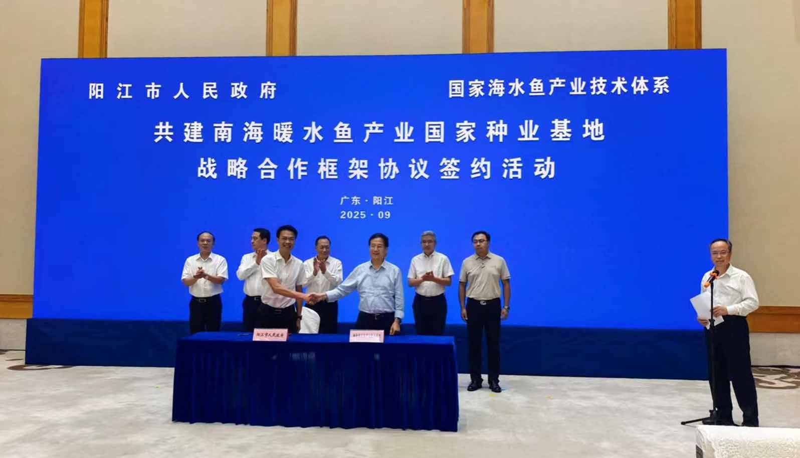 阳江市副市长关天表与陈松林院士分别代表阳江市人民政府和体系签署了《共建南海暖水鱼产业国家种业基地战略合作框架协议》,双方将秉承“优势互补、协同创新、产业发展、合作共赢”的原则,合作开展南海暖水鱼种质资源收集与评价、性状解析和优异基因资源发掘、新品种创制、苗种规模化繁育等科技创新研发,建立育繁推一体化种业体系,支撑建设南海暖水鱼产业国家种业基地,携手打造国家级种业科技创新与示范高地,支撑阳江市海水鱼养殖产业和海洋牧场高质量发展。