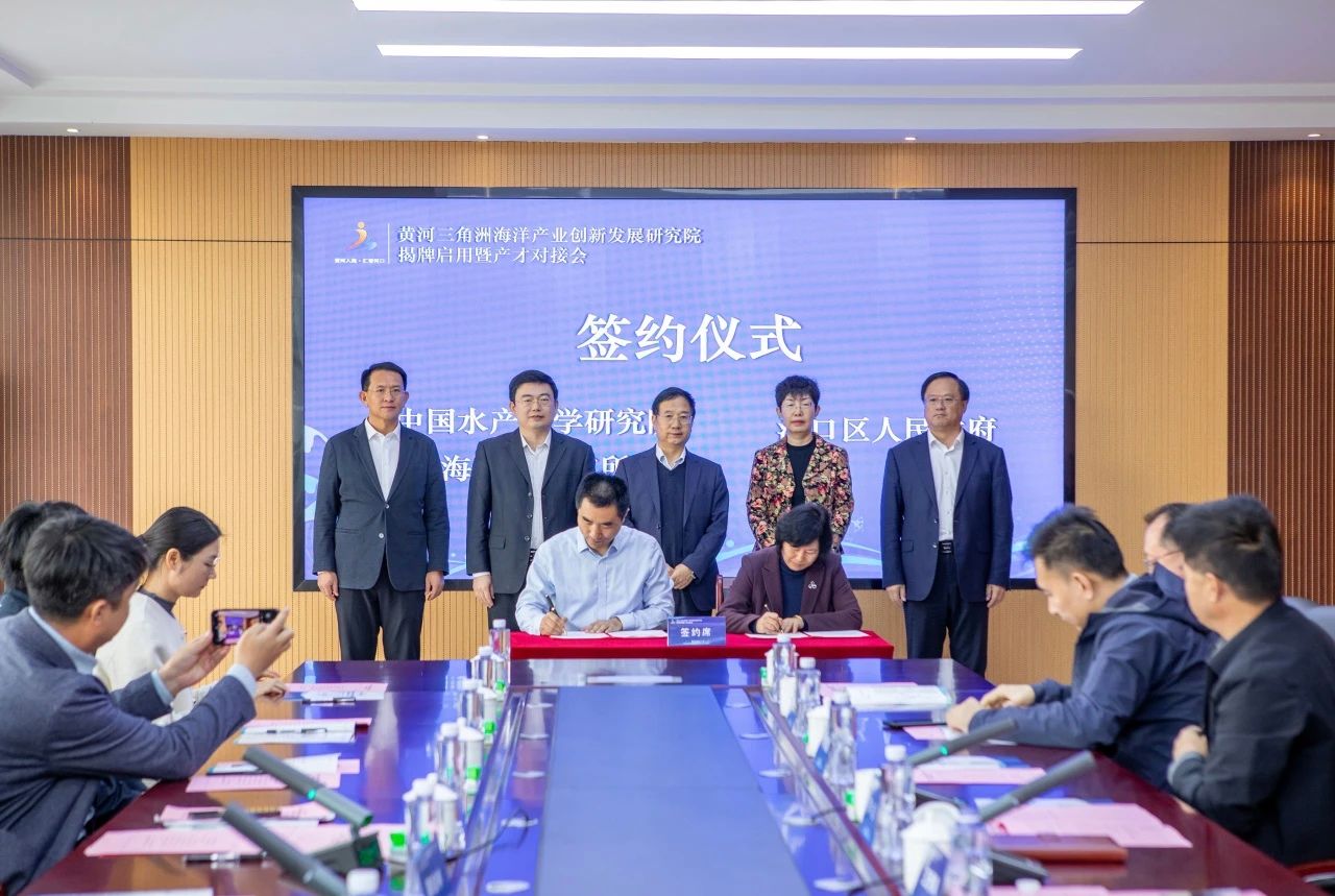 10月20日,由东营市委人才工作领导小组办公室指导的黄河三角洲海洋产业创新发展研究院(以下简称“研究院”)揭牌启用暨产才对接会在东营河口区成功举办。中国水产科学研究院黄海水产研究所副所长荣小军、中国工程院院士陈松林、成果转化处副处长李彬应邀参会。东营市副市长王秀凤、当地各级政府相关部门及22家重点渔业企业参加本次活动。仪式由河口区委副书记、区长李宝主持。
