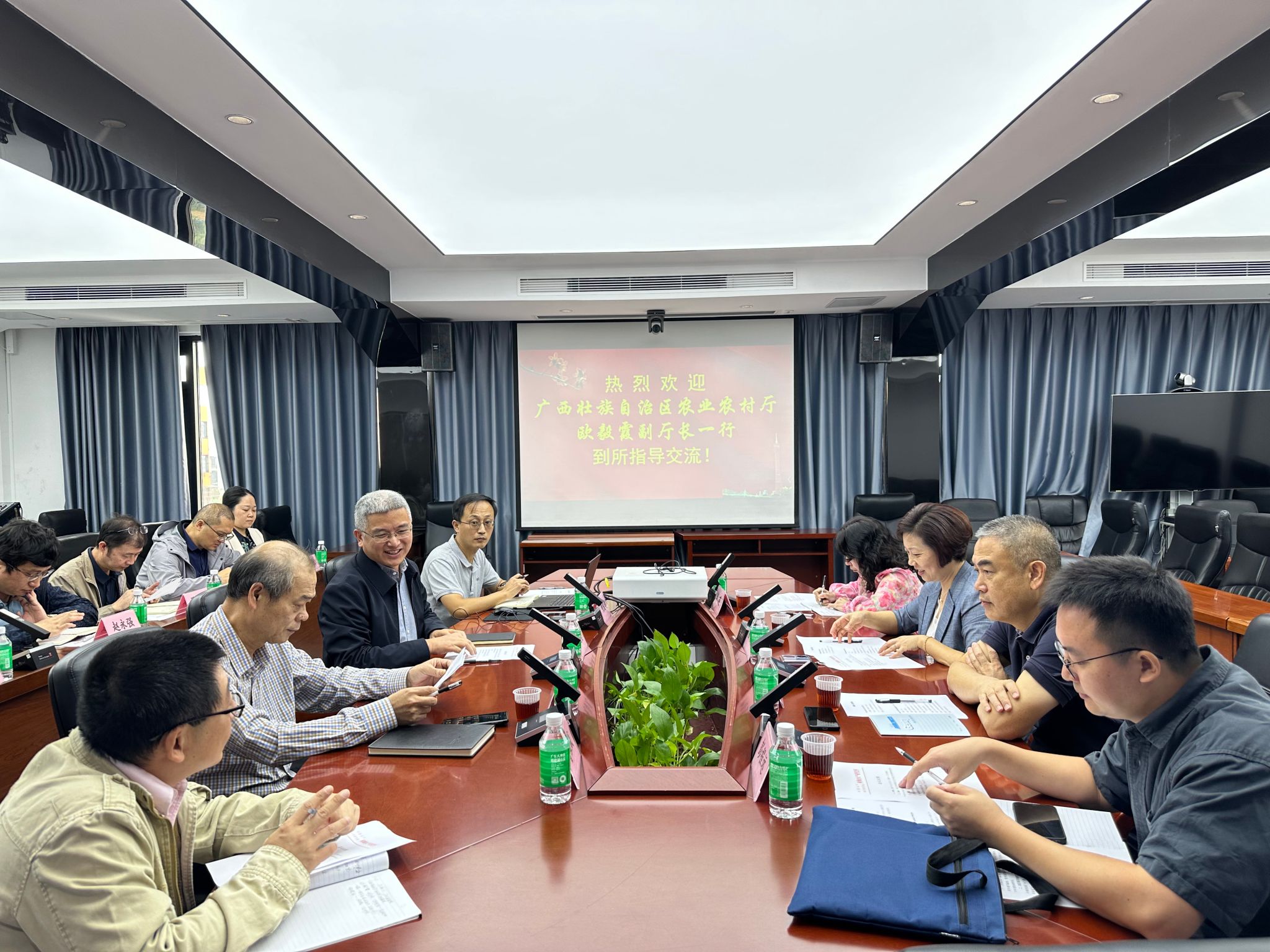 10月27日,广西壮族自治区农业农村厅副厅长欧毅霞带领渔业渔政管理处、对外交流合作处相关负责人一行4人,到中国水产科学研究院南海水产研究所开展渔业创新发展专题调研。南海所所长张殿昌、副所长吴洽儿,科研处、基建条件处和相关研究室负责人、专家参加座谈。